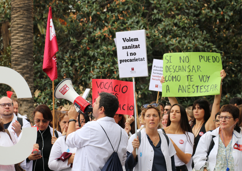 En aquest sentit, i adreçant-se a la gran quantitat de professionals joves que hi havia a la concentració, ha remarcat que “és imprescindible que se sentin reconeguts, respectats i valorats. I que s’escolti la seva reclamació consistent en quelcom tan bàsic com tenir dret a gaudir també de la seva vida personal. Treballar per viure, no viure per treballar. Així de bàsic”.